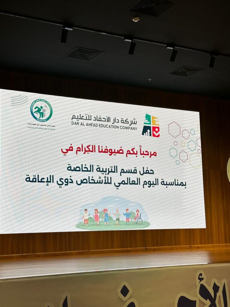تلبية للدعوة شركة دار الاحفاد التعليمية حضرت جمعية بصيره ممثله في مساعد المدير التنفيذي أ.خالد ال منصور المقام في قاعة الامير عبد العزيز بن مساعد بن جلوي في شركة دار الاحفاد مساهمه قسم التربية الخاصة بمناسبة اليوم العالمي للأشخاص ذوي الإعاقة..